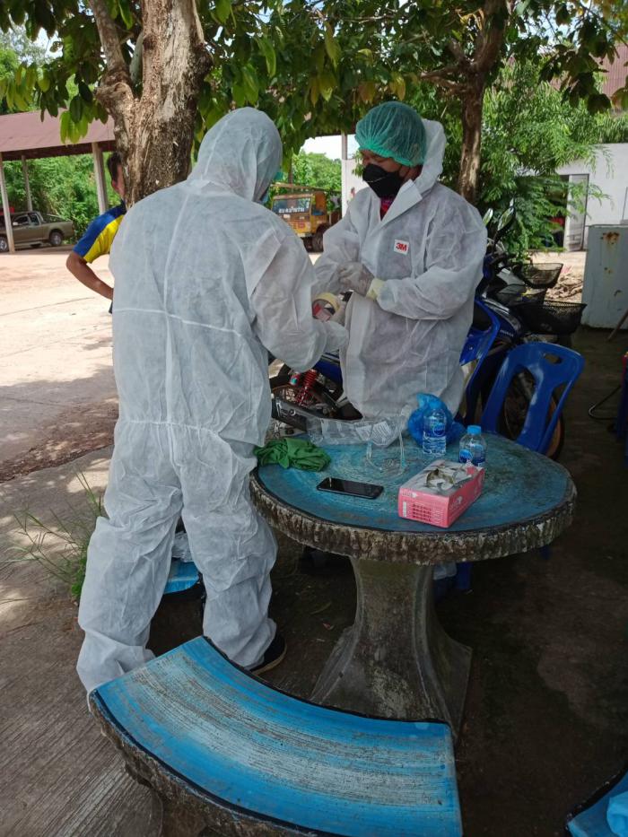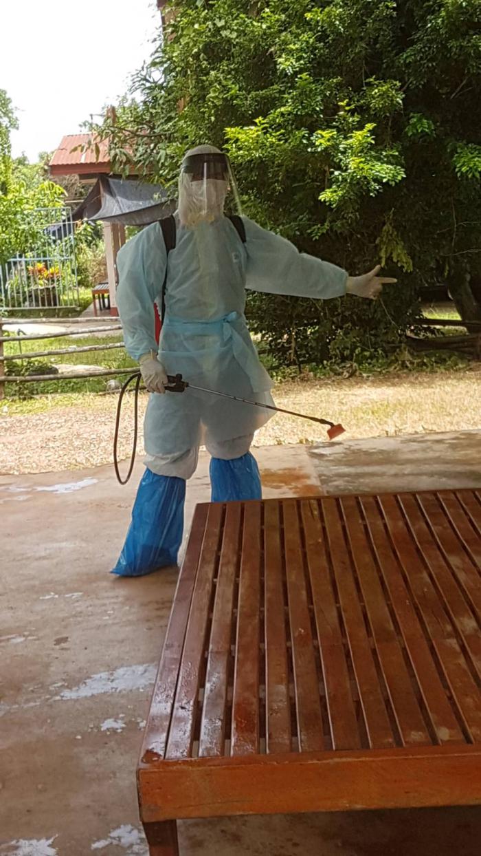 ฉีดพ่นน้ำยาฆ่าเชื้อไวรัสโคโรนา โควิด-19 ในพื้นที่ที่มีผู้กักตัวในหมู่บ้านต่างๆ